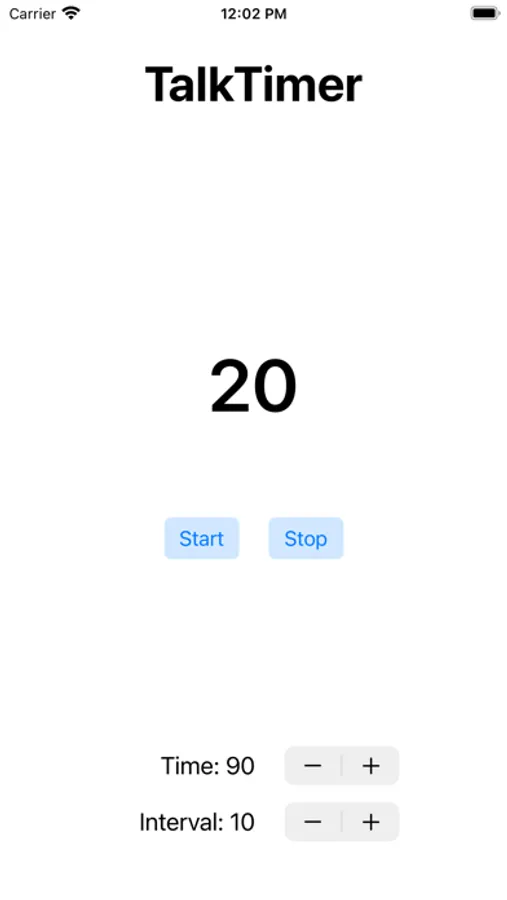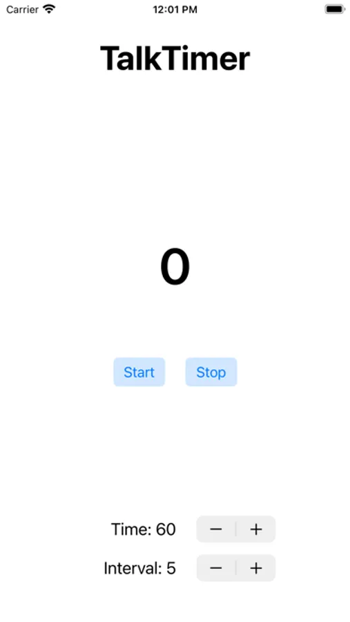 Select the total time and reminder interval. The timer will speak out loud your time for each such interval and alert you when the time is up!
