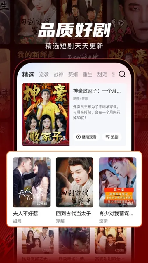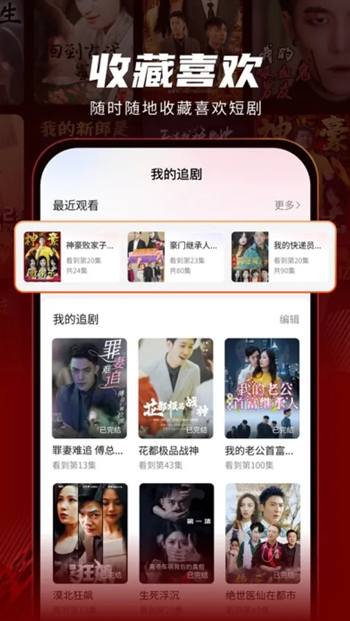 免费追更海量精品短剧,还提供了追剧、收藏、推荐等板块,在这里,可以开心追剧。