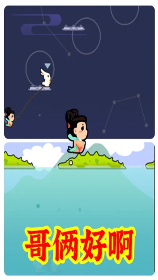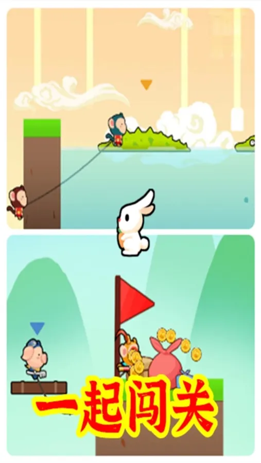遊戲中玩家從奇葩滑雪、雙人面對面、嫦娥奔月、跳出五指山等場景中選擇一個場景,通過默契的互相配合,幫助兄弟兩人成功到達終點,十分考驗玩家對力度的把控以及相互的默契度,一起來挑戰吧!