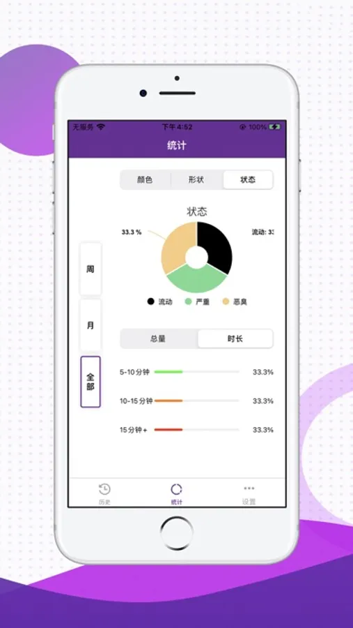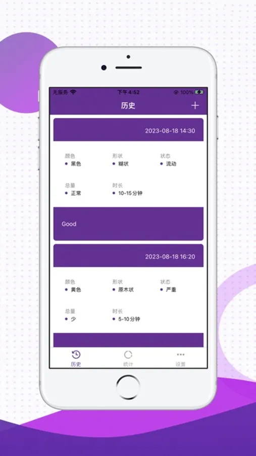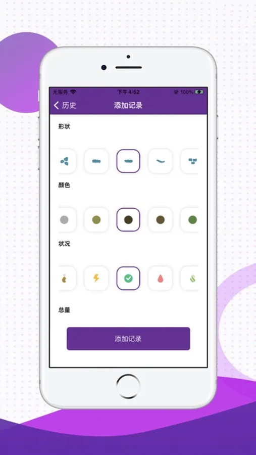 本应用程序帮助用户记录每次排便的详细信息,包括日期、时间、颜色、形状、状态、总量、时长等信息。并将数据汇总成周、月度、全数据报告,帮助您能直观的了解自己的排便状况,更能帮助您就异常情况发生时更好地与医生进行沟通反馈。