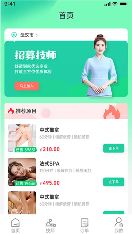 用户可以注册成为技师,注册成功后,技师需要先完成实名认证。实名认证通过之后,即可提交技师审核认证,认证通过之后,技师可以发布相关服务项目,等待同城用户下单。