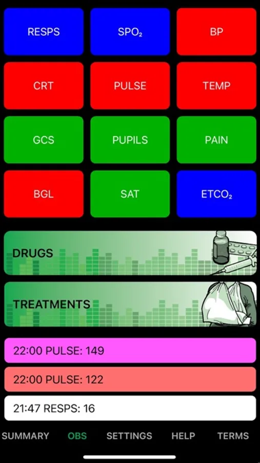 - Warning colours for observations outside of normal range