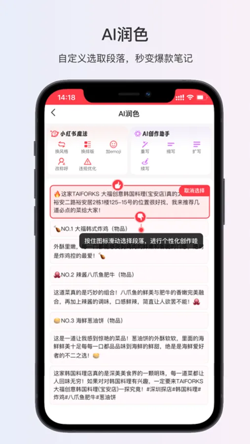 内容优化工具:软件内嵌有多种工具,如emoji添加、文风润色、排版调整等,让用户的内容在形式和质量上都能达到优化。