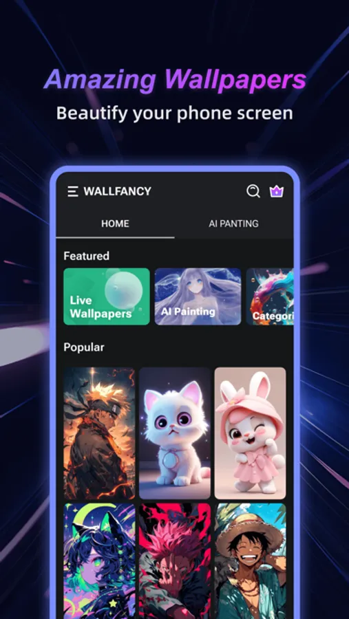 Transform your lock screen and home screen with a live wallpaper that suits your style. Use WallFancy to find what you want. You can also make your own AI wallpaper by entering words or short sentences into AI Painting, which will make you feel every time. I feel happy every time I pick up the phone.