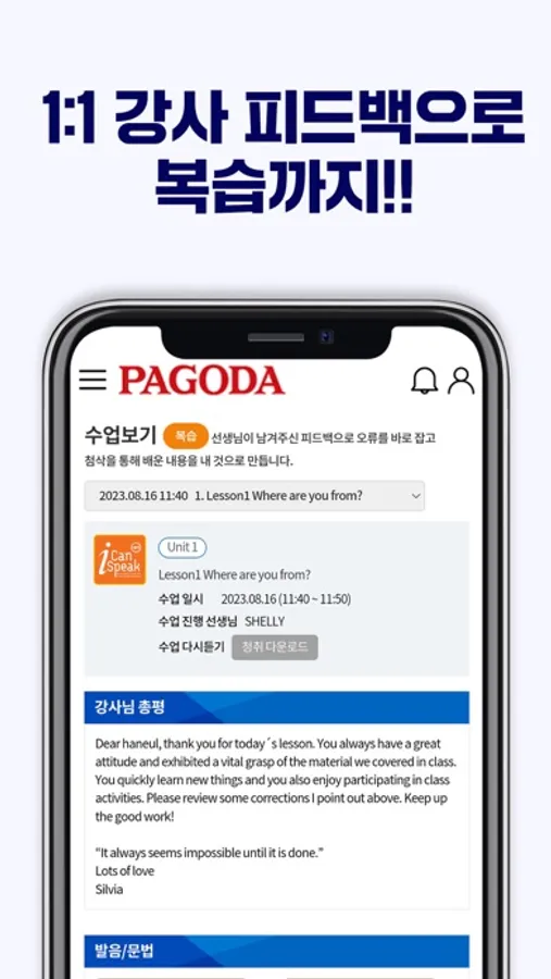 수업 녹음/녹화 파일과 꼼꼼한 피드백으로 바로 교정!