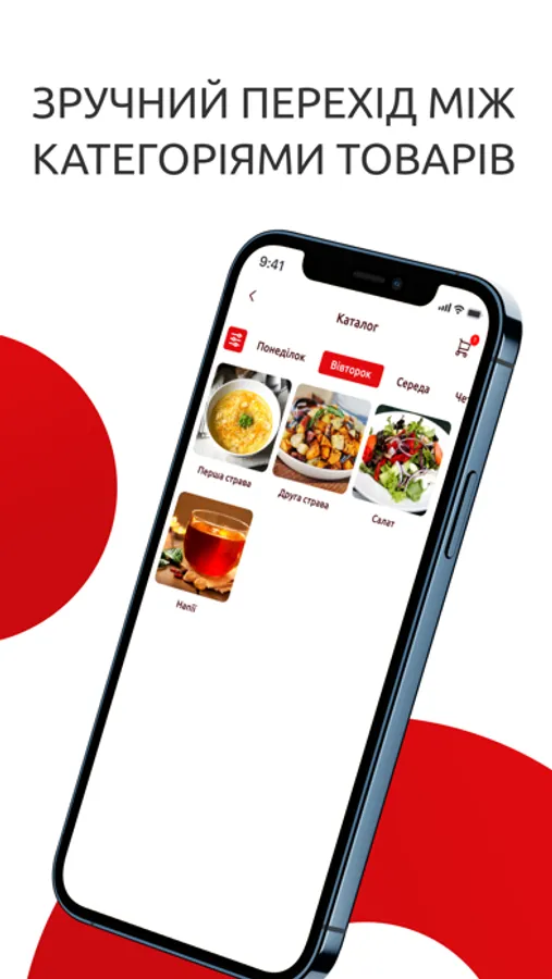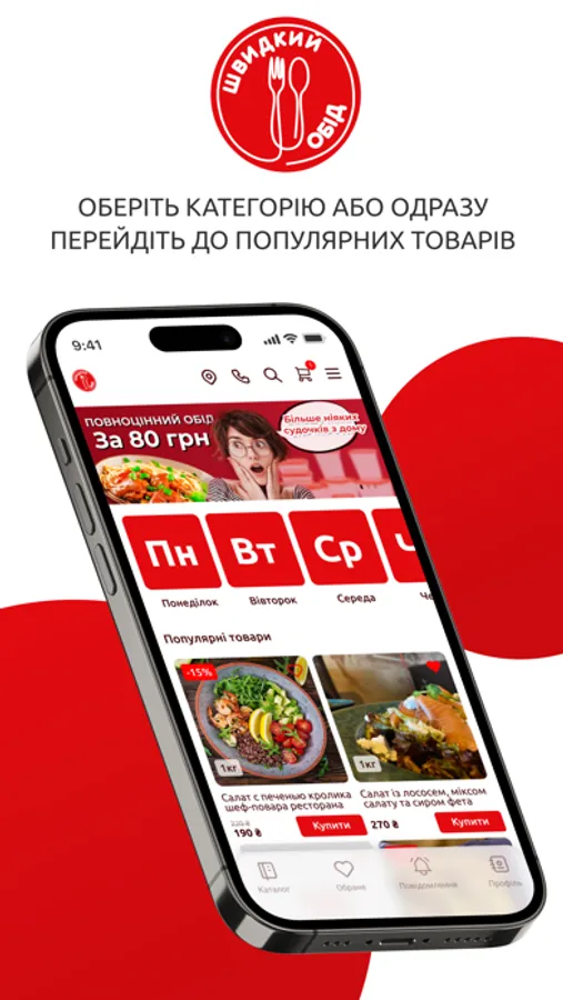 -Замовлення в два кліки: Зробіть свій вибір, додайте страви в кошик і оплатіть замовлення швидко та зручно, не виходячи з офісу.