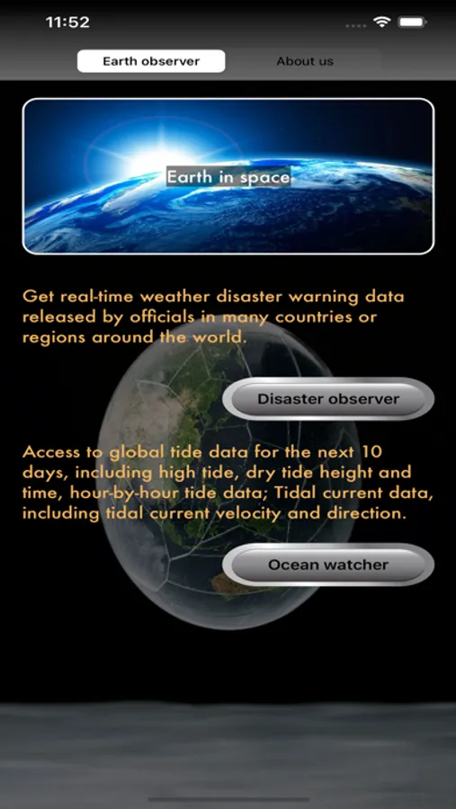 "Earth observer" is an APP that monitors all kinds of natural information about the Earth. It can monitor photos of the Earth in the universe in real time, and it can also monitor natural disaster warnings at each coordinate position of the Earth, as well as tidal current information at each coordinate position. So you can better understand our planet. Timely access to all kinds of earth's natural information.
