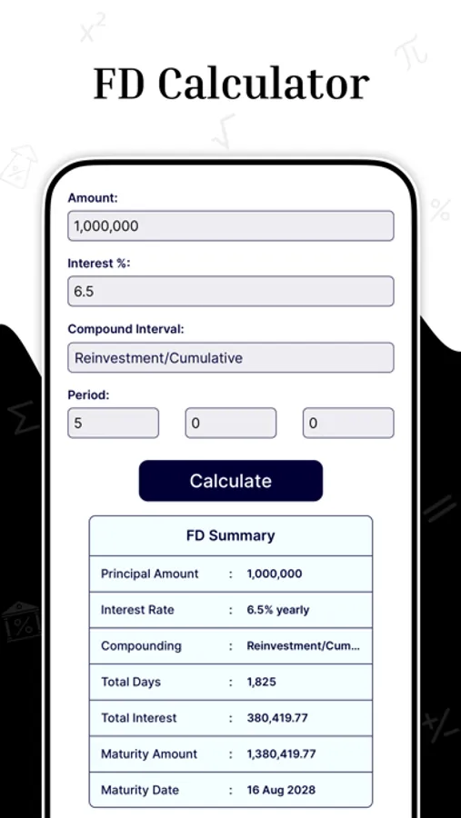 - Planning your Fixed Deposits? Our calculator ensures you're in control of your future earnings. Secure your financial freedom today!