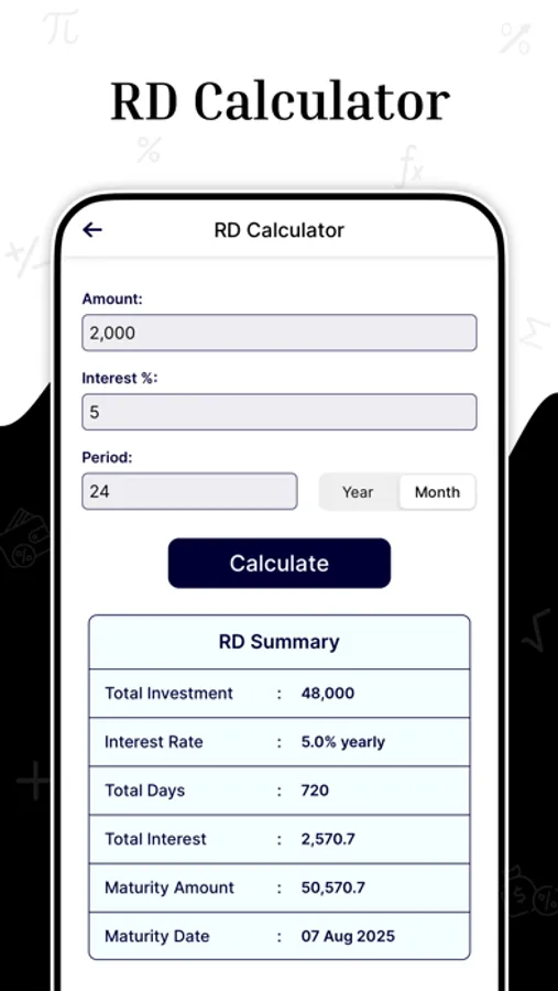 - Watch your Recurring Deposits flourish with our RD Calculator. Achieve your savings goals step by step!