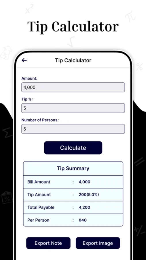 • Tip & Split Calculator: