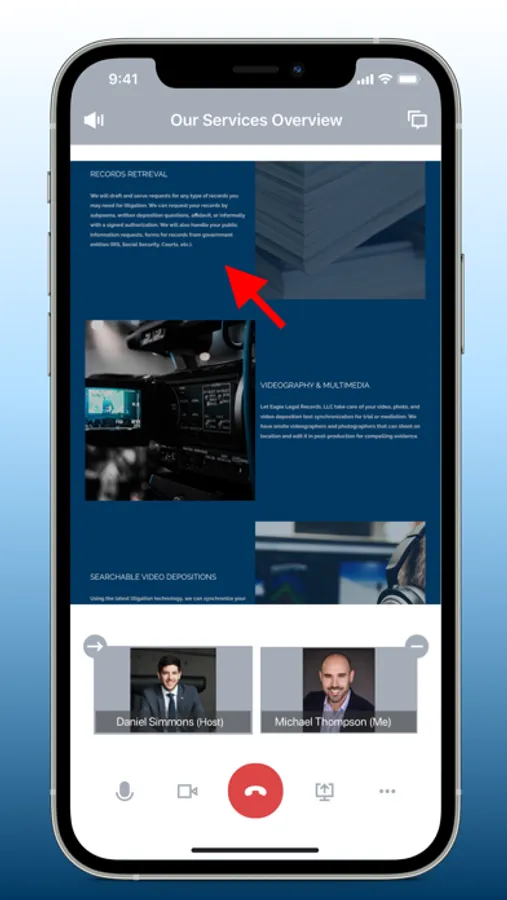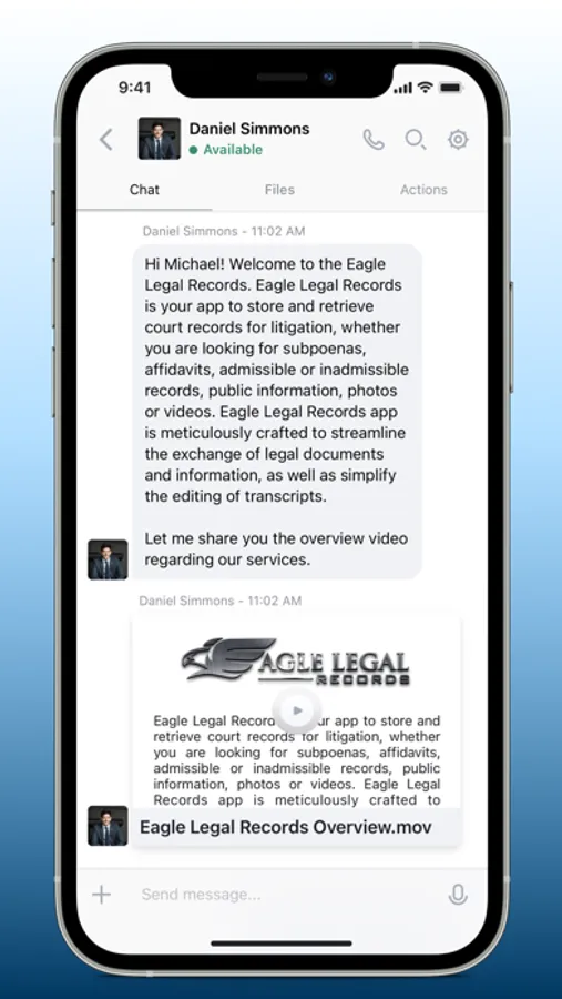 Eagle Legal Records app is meticulously crafted to streamline the exchange of legal documents and information, as well as simplify the editing of transcripts. You can securely sign, share, and store crucial documents effortlessly. During trial preparation, you have the convenience of effortlessly reviewing, sharing, and downloading photos and videos. Additionally, you can communicate, consult, schedule meetings with our team and always stay in the loop about your case, all within the same app.