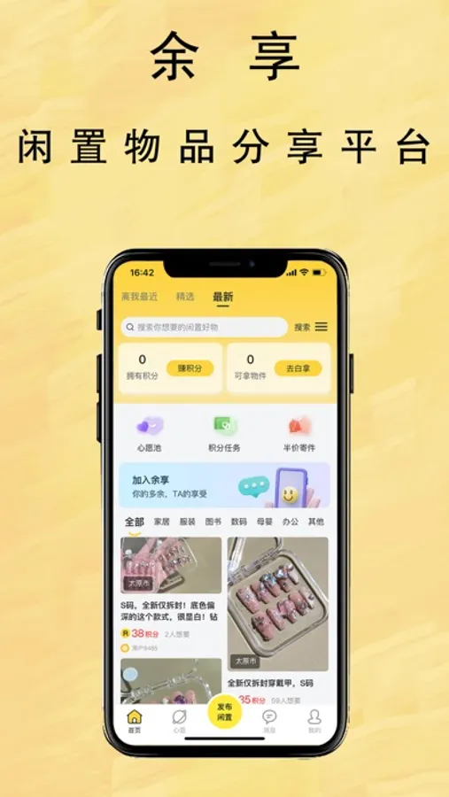 余享是一个非盈利性的闲置物品分享互赠社区。在余享,您可以分享自己的闲置之物,也可以免费领取他人的闲置物品。