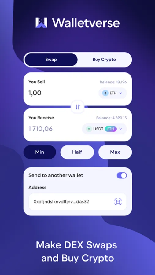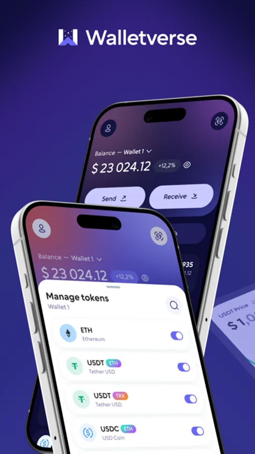 Walletverse is a free self-custodial DeFi (Decentralized Finance) crypto wallet app. This multi-currency crypto wallet supports a wide range of tokens and blockchains.