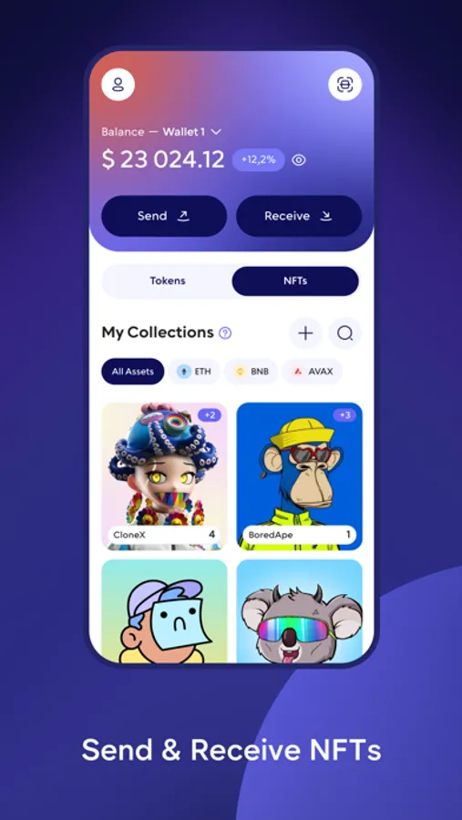 With multi-currency wallet support, Walletverse is the ideal blockchain wallet app for iOS, giving you access to a wide variety of tokens like ERC20, TRC20, BEP20 (BSC), BEP2 (BNB), C-Chain (Avalanche), MATIC (Polygon), SOL (Solana).