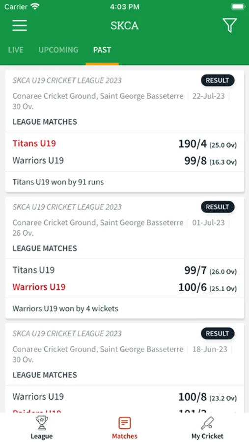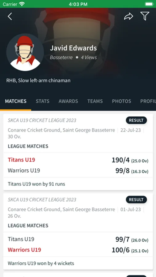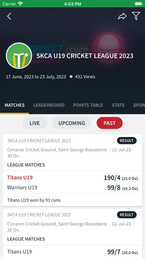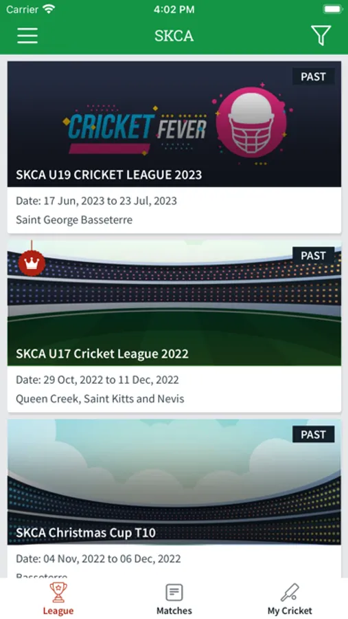 This is an official St. Kitts Cricket Association App to follow Live Scores, Match Scorecards, Player Stats, Leaderboards, News and other topics of interest pertaining to St. Kitts Cricket Association.