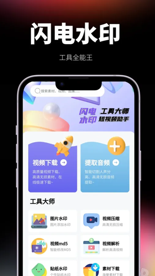 智能视频自媒体工具软件、视频下载、图片水印、提取音频等功能。