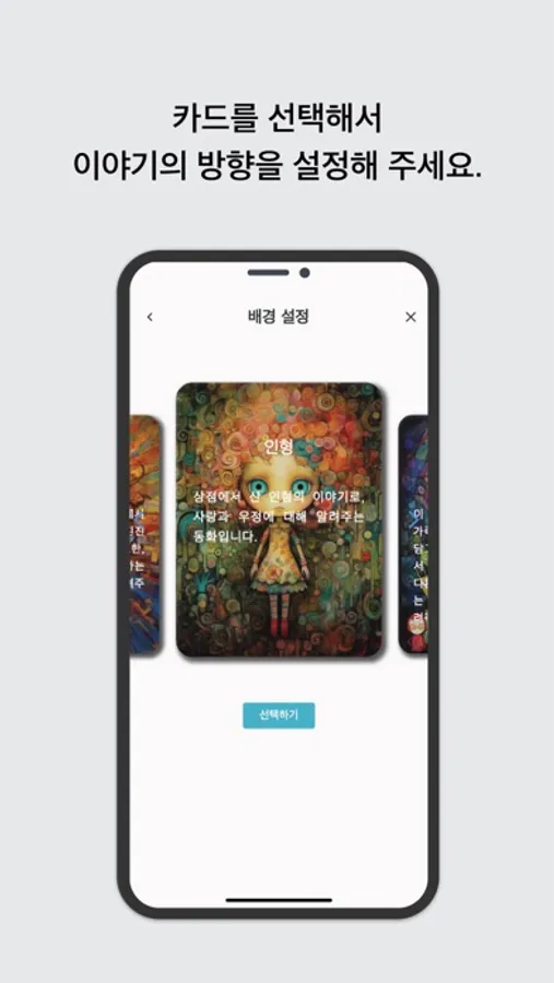 - 이야기 제작: 캐릭터 설정, 배경과 이야기 카드 선택으로 세상에 하나뿐인 나만의 이야기를 완성니다.