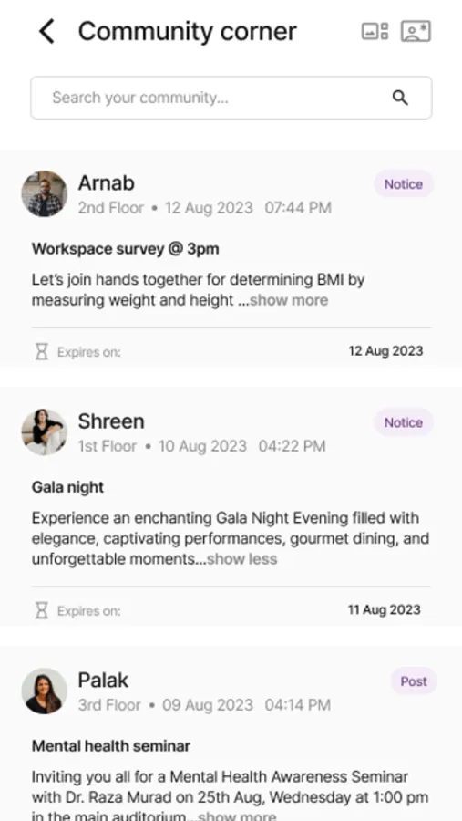 4. Facility Booking at Your Fingertips: Revolutionize facility management with easy booking of meeting rooms, auditoriums, and more. Avoid double bookings and administrative headaches. Users can also pay for facilities through the app.