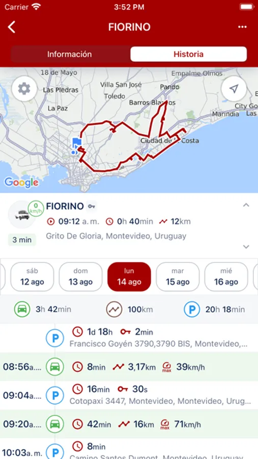 - Modo de mapa. Acceda a unidades, geocercas, recorridos y marcadores de eventos en el mapa con la posibilidad de determinar la localización de su dispositivo móvil.