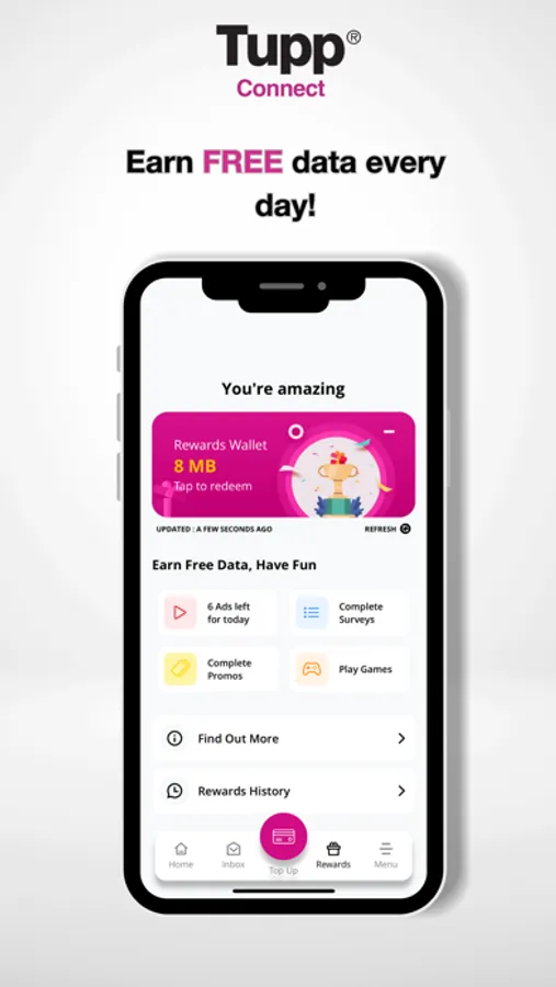 5. Free Daily Data: Earn data by viewing ads, surveys, or playing games in-app.