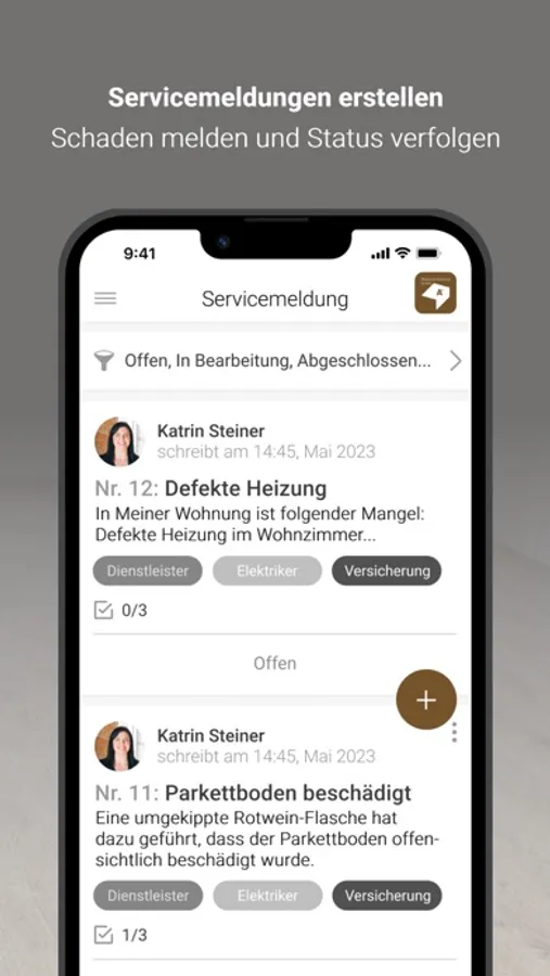- Interaktiv: Effizienz gehört zu unserem Tagesgeschäft. Ihre Schadensmeldungen und sonstige Anliegen werden rasch bearbeitet und Sie erhalten regelmäßig per Push-Nachricht ein Status-Update.