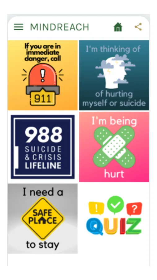 Reaching out to the minds of St. Charles County, Missouri youth, MINDREACH combines self-assessments, access to mental health hotlines, definitions, parent support, and some fun into a single location. Instead of trying to remember all the phone numbers and organizations that can help when you are in a crisis, all one needs is this app.