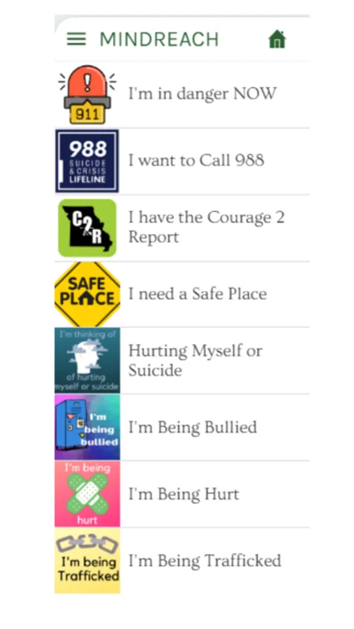 MINDREACH also includes a section just for Parents to learn about mental health and discover resources to help when a youth is struggling with mental health. Although MINDREACH includes links to national and state hotlines, it was specifically developed for youth in St. Charles County, Missouri.
