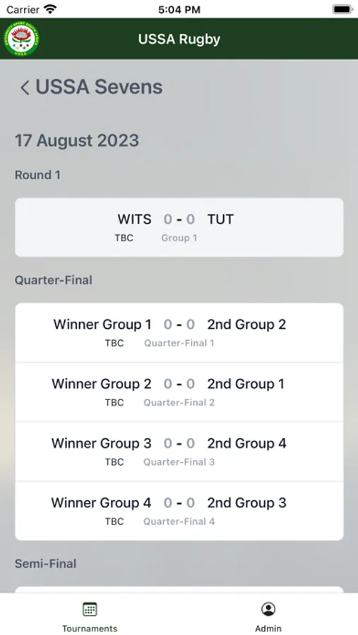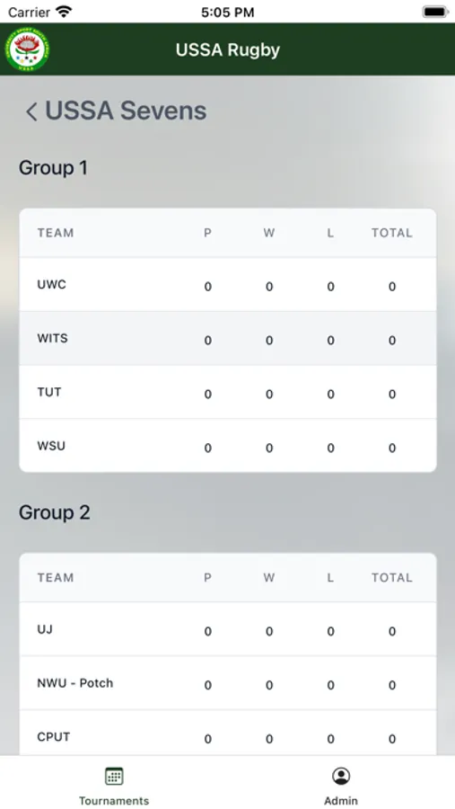 Fixtures, results and standings for all USSA Rugby Tournaments