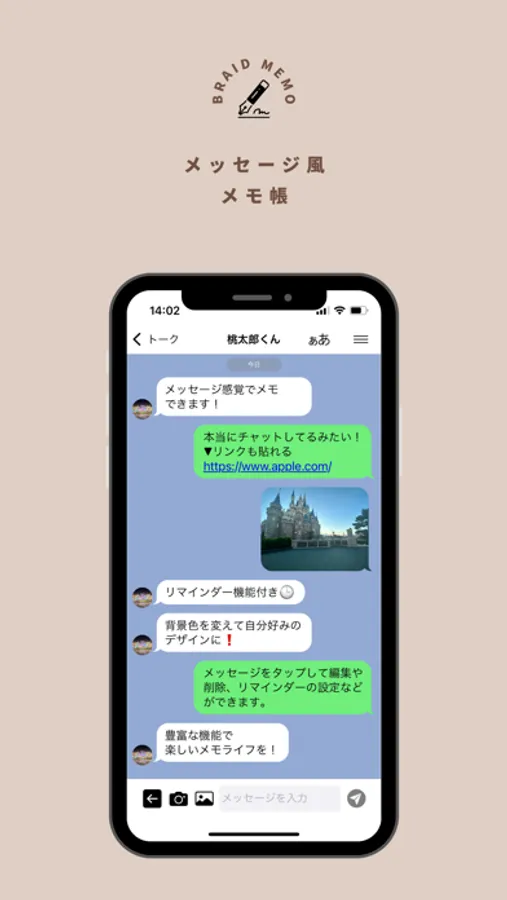 ・チャットアプリのようなインターフェイスでメモを取ることができます。直感的なデザインで、簡単に日常の対話やアイディアをメモとして記録することが可能です。自分自身や仮想の友人との「チャット」を行い、そこにアイディアやタスクを記入して整理することができます。