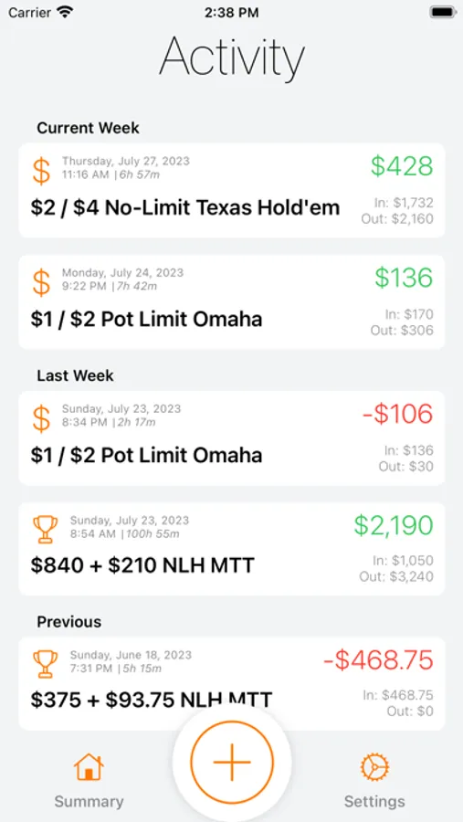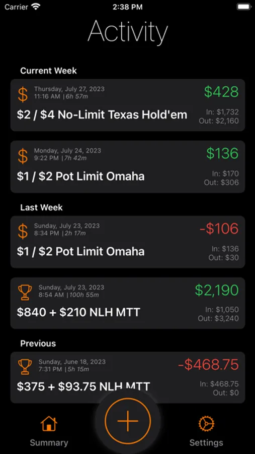 • Track all of your cash games, tournaments, and transactions