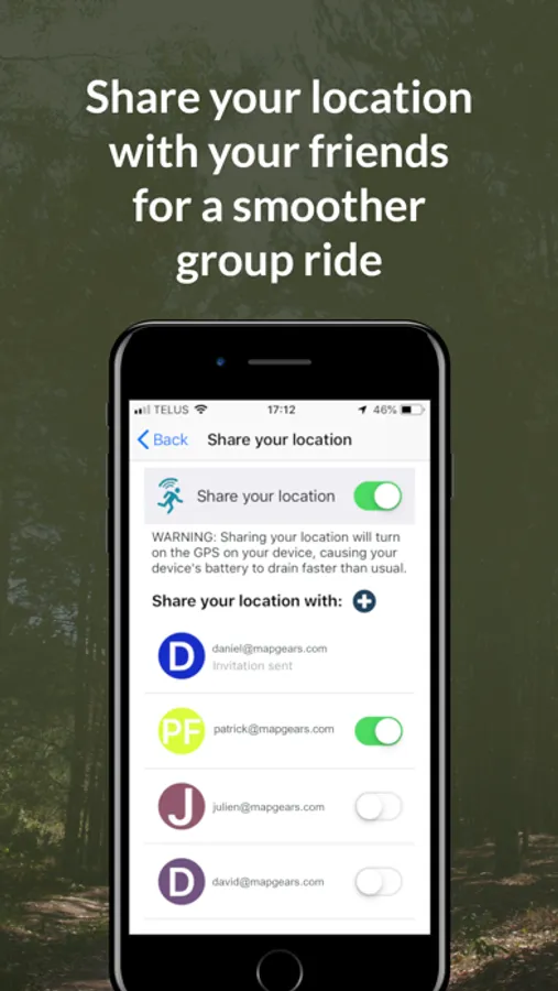 ►Continued use of the GPS and location sharing running in the background can significantly increase battery consumption. It is recommended to toggle it off when not needed to improve autonomy.