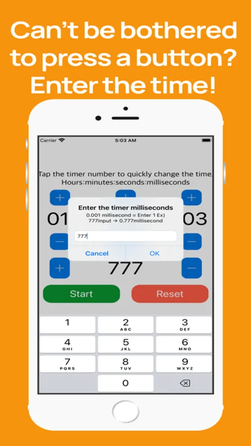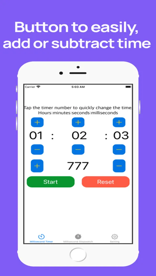 - If you turn off other apps while the timer is in progress and then turn back on the Millisecond Timer app, it will continue to work (continuous operation).