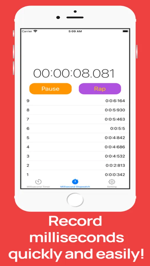 Millisecond Timer is an app that allows you to count down to the millisecond. It also has a millisecond stopwatch that allows you to record down to the millisecond.
