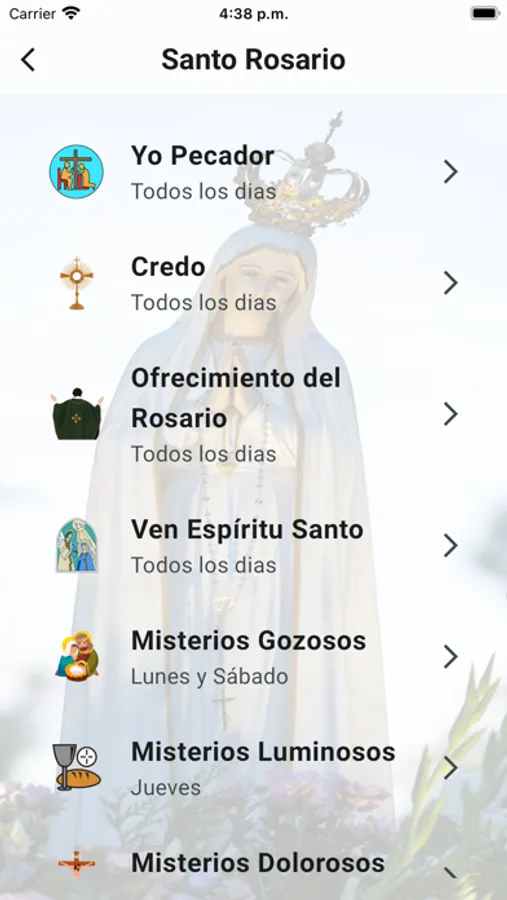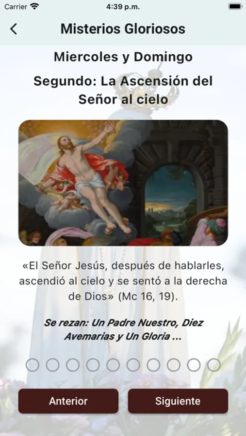 - **Santo Rosario Guiado:** Ahora puedes rezar el Santo Rosario en cualquier momento y en cualquier lugar. Hemos incluido un guía paso a paso para que puedas meditar en los misterios de la vida de Cristo y María.