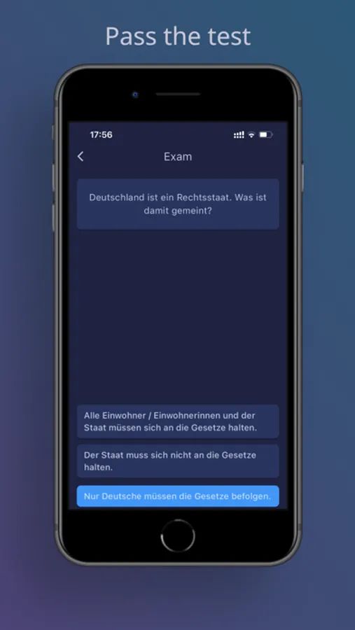 A complete catalog of exam questions for the Living in Germany test, with which you can prepare for the test. The test consists of 300 general questions and 10 questions relating to the respective federal state.