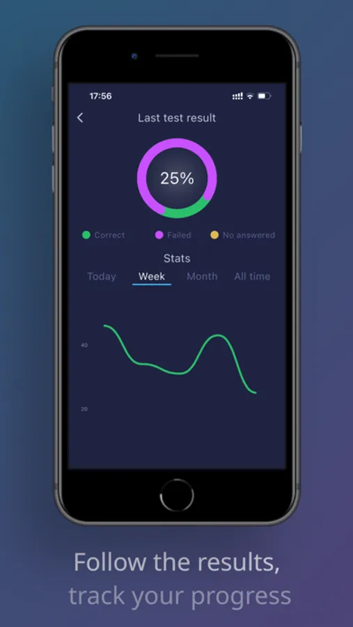 Several study modes are available as well as an exam mode. Track your progress dynamically on the statistics page.