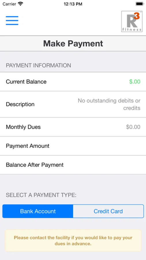 Connect to your R3 Fitness gym membership account and gain access to all that your club has to offer you! Schedule an appointment with a personal trainer or enroll in a fitness class. Purchase products and services. Update billing information. View your account visit and transaction activity and much more!