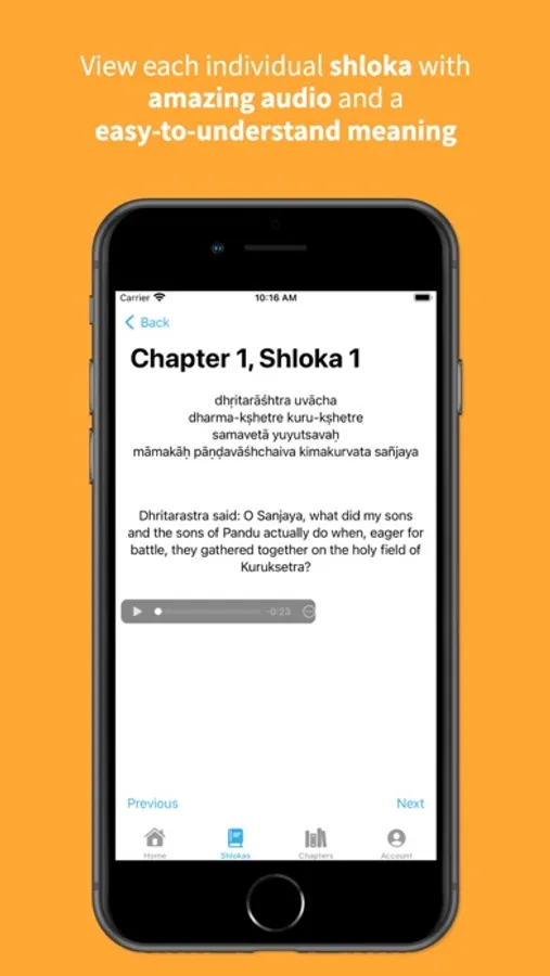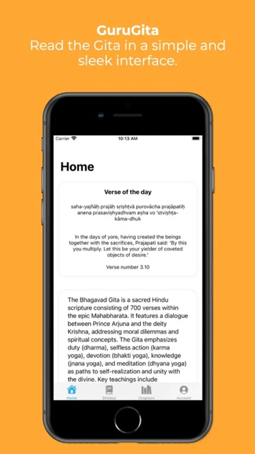 GitaGuru is a beautiful app designed to bring the ancient wisdom of the Bhagavad Gita to your fingertips. This app serves as a modern, simple, and sleek guide for the Gita. Read a Verse of the Day, read individual verses one-by-one with meaning, and read full chapter scripts. Audio is provided by Rohan J.
