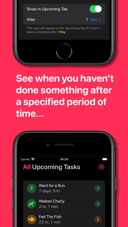 - Optionally get notified when you haven’t done something after a specified period of time.