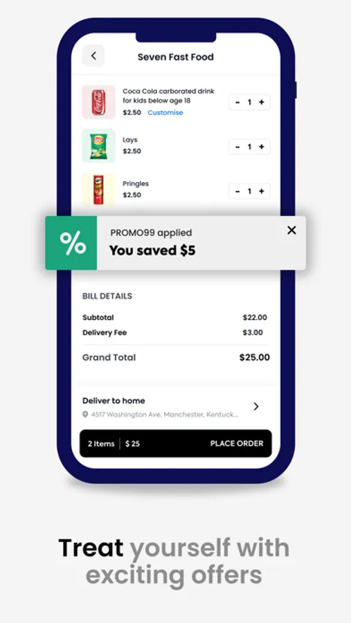 Add info to your account on our app to speed up your order process. Save card details to pay online, reorder your favorites anytime and save addresses so you’re ready for delivery wherever you are.