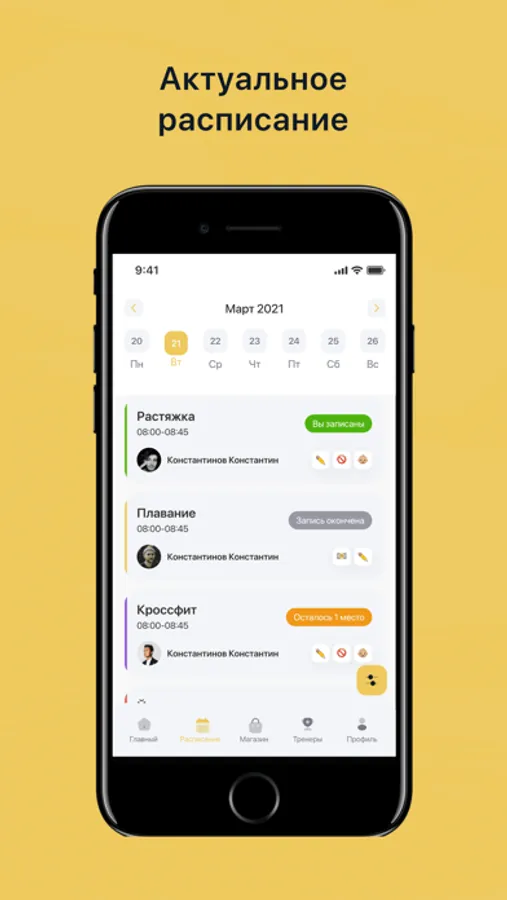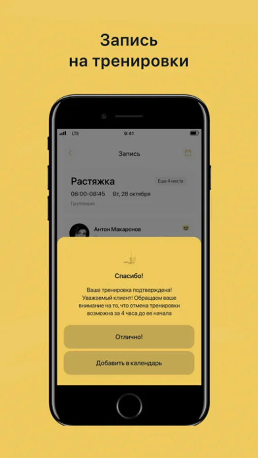 - Получать PUSH-уведомления о предстоящей тренировке за 3 часа;