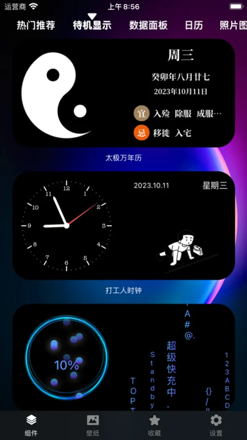 Standby widget: Supports free combination of charging lock screen interface clock, charging special effects, Tai Chi diagram, perpetual calendar, panel, etc