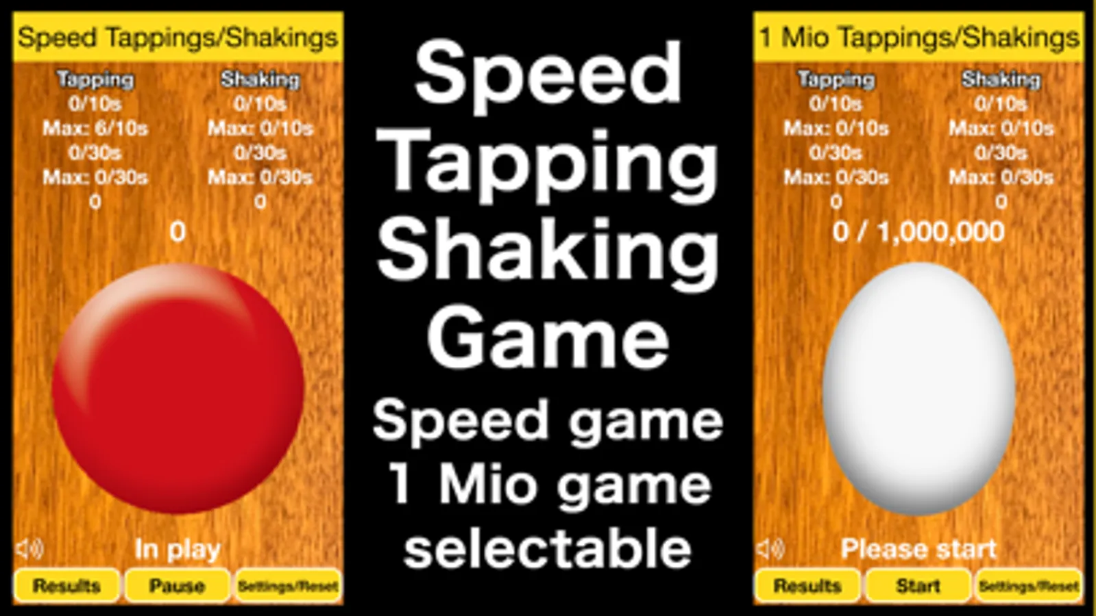 You can choose between Speed Tappings/Shakings game and 1 Mio Tappings/Shakings game.