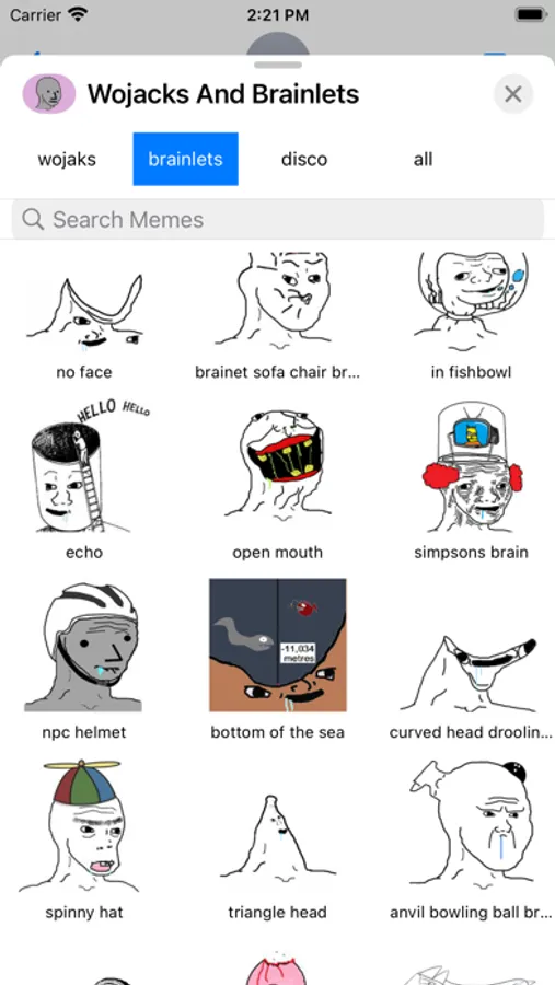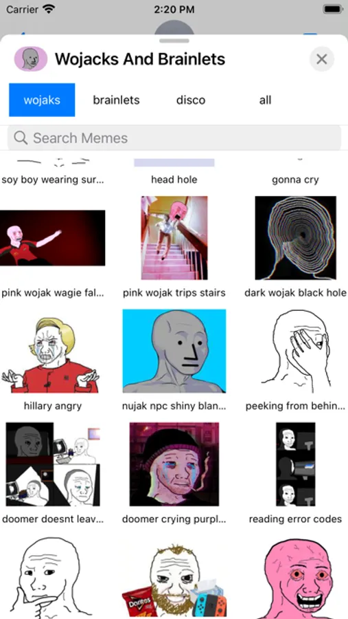 The most advanced wojak head sticker app! select from hundreds of your favorite meme heads and pin your favorites! You can even upload your own photos and videos for quick access. With this app you'll quickly become the best texter because you'll have a dope meme readily available.