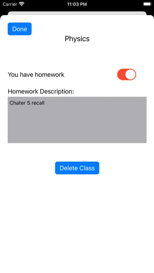 Do you ever find yourself missing homework assignments, or forgetting the assignment as soon as you leave the class? If that's the case, then Did I Do It is for you. Add your classes in under a minute, and update a class's homework status in seconds. Easy operation allows you to update homework status as your teacher gives it.