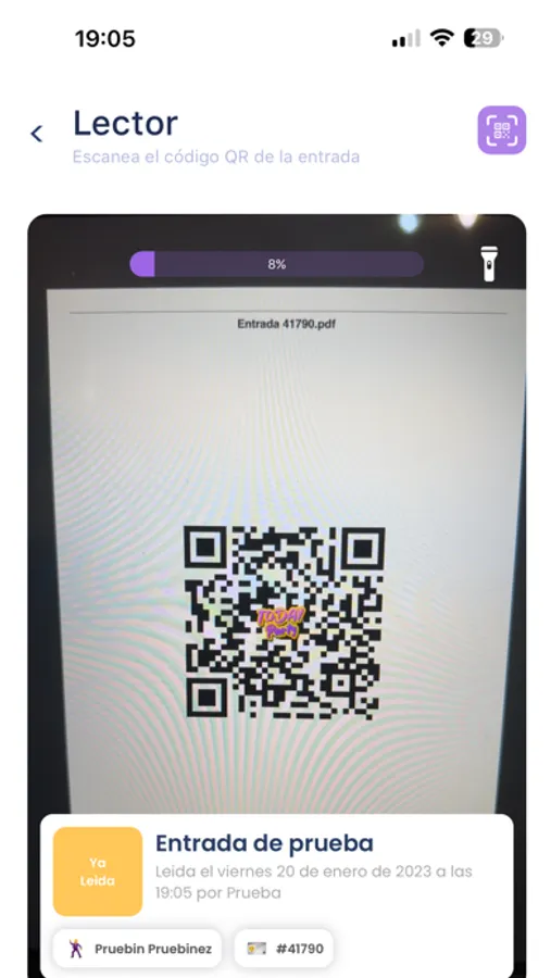 Todas las entradas escaneadas se sincronizan automáticamente entre todos los lectores de un mismo evento, por lo que se requiere una conexión de internet activa para utilizar la aplicación.