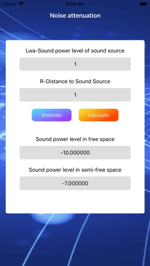 This is a calculator for calculating noise attenuation, available to professionals who need it