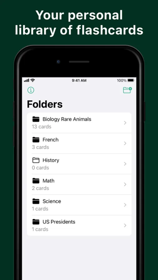 We're introducing our new flashcard maker app. It's a perfect tool for students and lifelong learners. Whether it's a foreign language or math formulas -- learning something with flashcards has never been so simple. The intuitive native user interface is super easy to use. And for our visual learners, the app enables you to attach images to flashcards. Enter the school season with our incredible app to ace any subject.