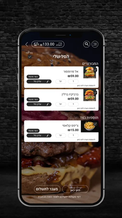 ניתן לבצע הזמנות ומשלוחים ישירות מהאפליקציה אל פרופסור בורגר האוס.