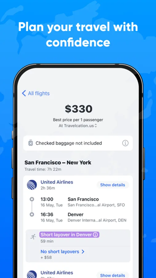 Fast and User Friendly: Our app quickly scans all popular flight sites and gives you the best options. You just make your choice and leave the rest to us.